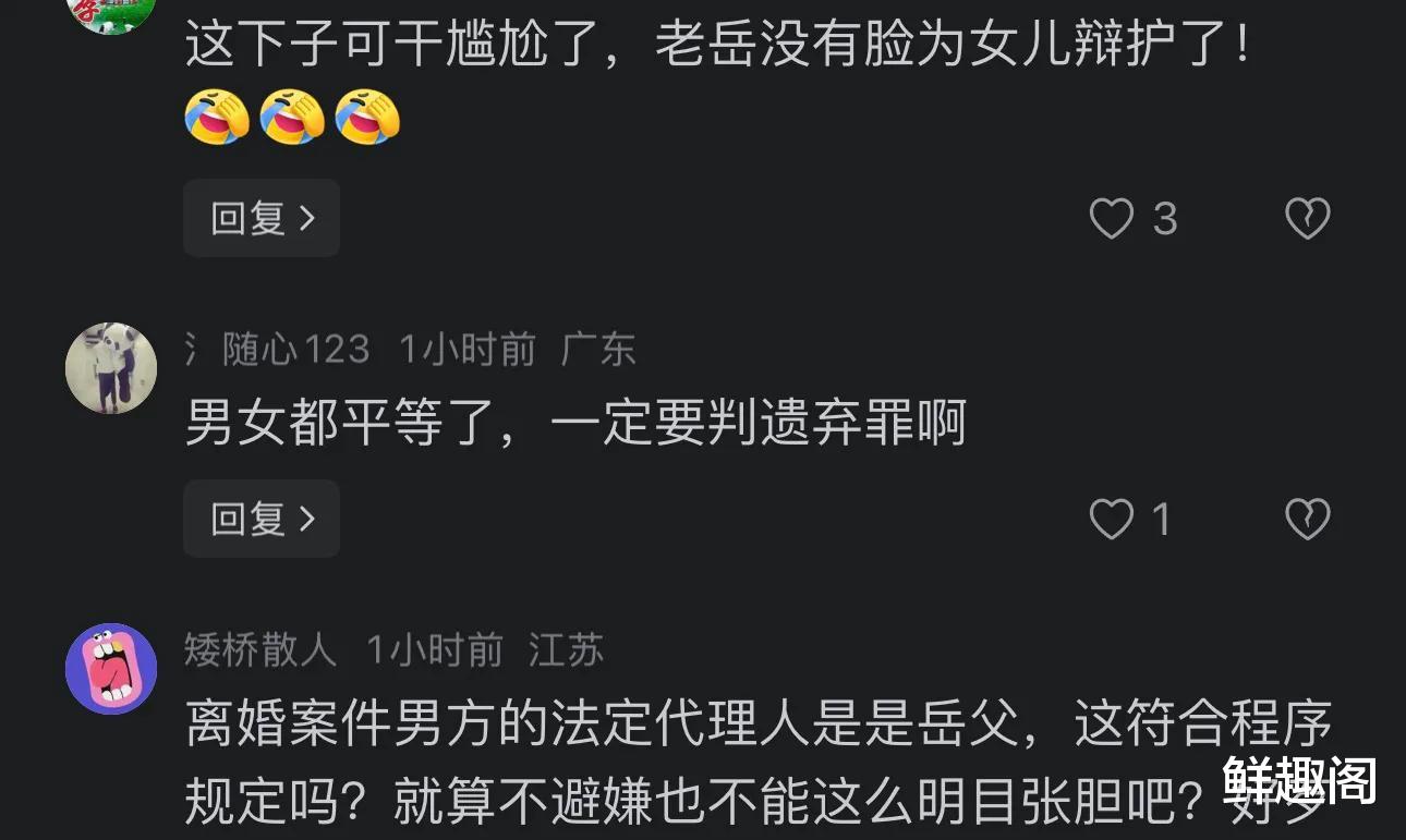 另外,我们还得知谢右翔并非段筱鹃的亲生父亲,也就是说他们没有血缘关系。在法庭上,谢右翔称支持女儿的离婚决定。你说这奇葩不奇葩,女儿要离婚,岳父给女婿当代理人,这不就是让离婚变得更容易吗?