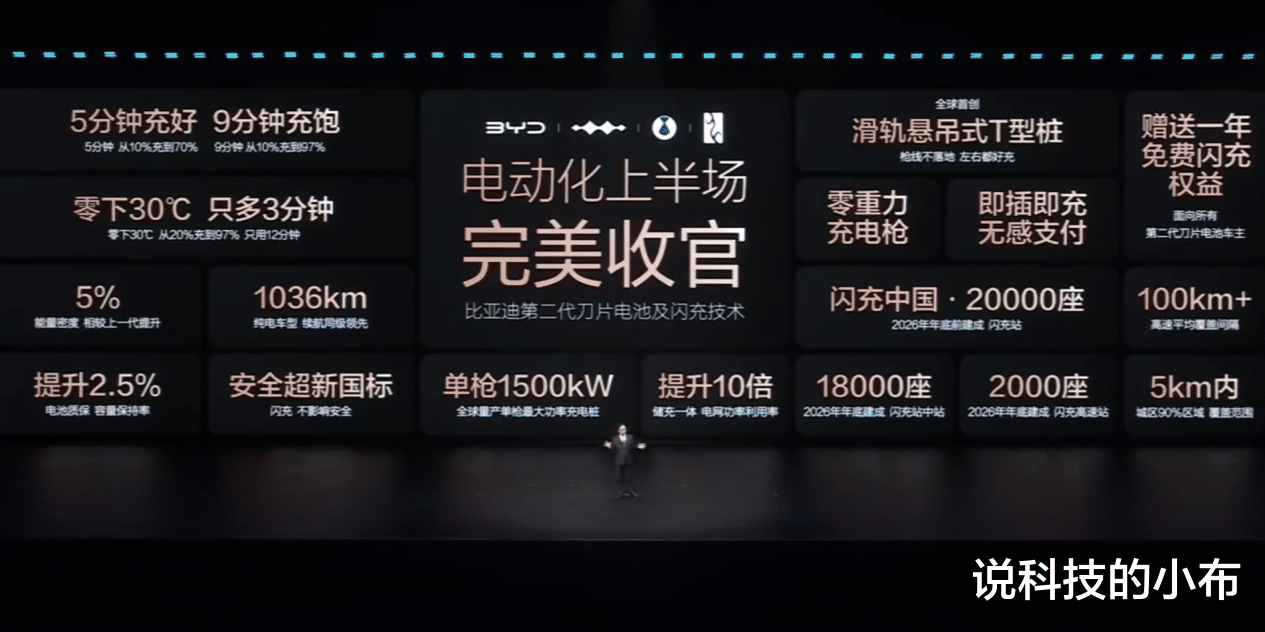 充电站方面,比亚迪王传福宣布会在2026年底建成20000座充电站,其中高速闪充站2000座。而且王总还宣布所有搭载第二代刀片电池的闪充车车主,赠送1年免费闪充权益,一年充电费用包括服务费全免。