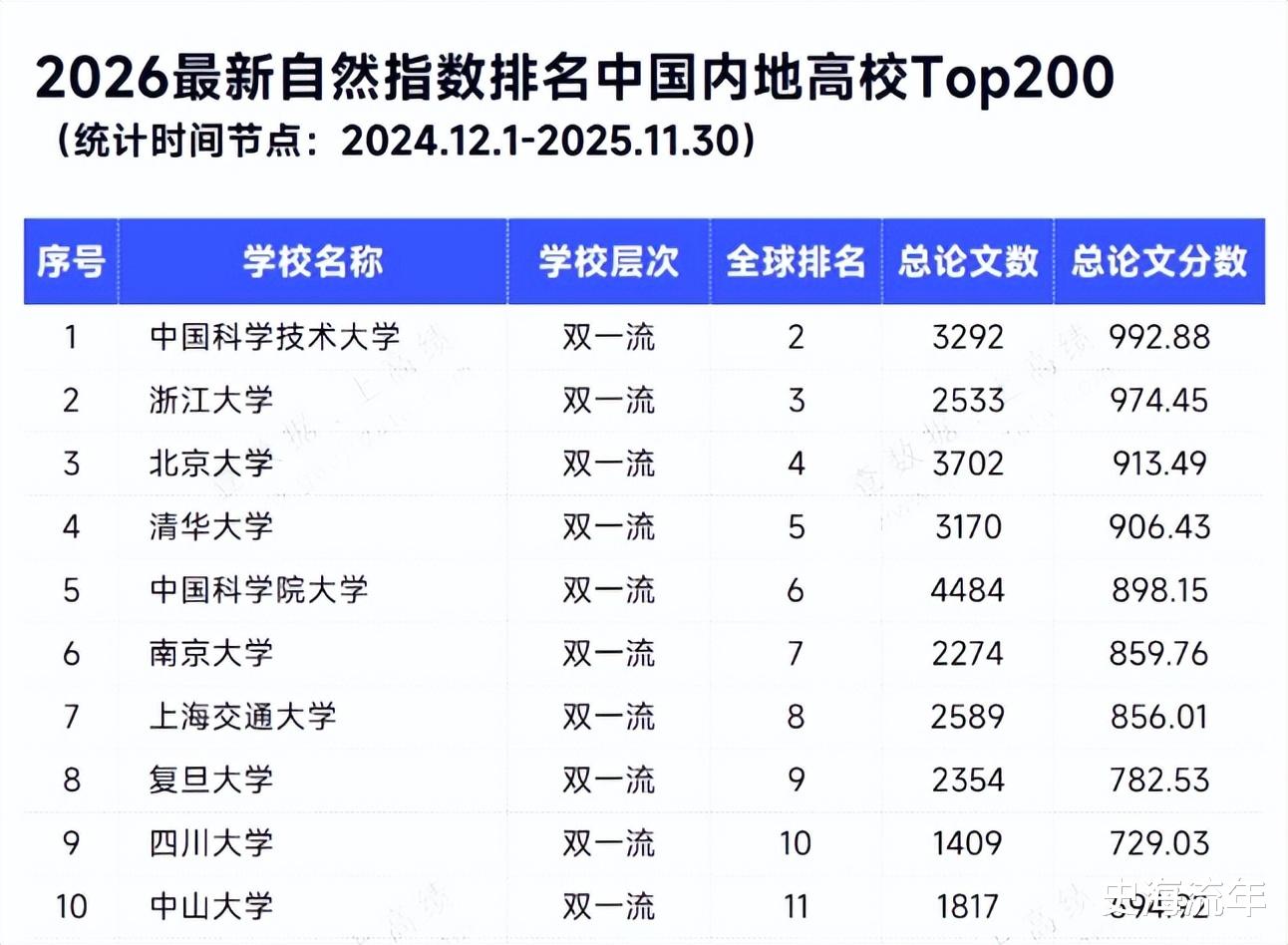 近日,自然指数官网更新了最新的自然指数排名。在《2026年新自然指数排名中国内地高校TOP200》中,中国科学技术大学以992.88的总论文分数,居位居全球高校第二、中国内地高校第一。