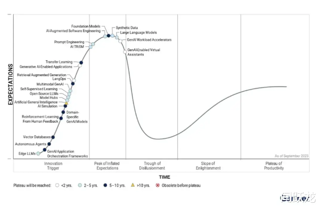 Gartner预测到2026年,将有超过80%的企业使用生成式AI的API或模型,或在生产环境中部署支持生成式AI的应用,而在2023年初这一比例不到5%。