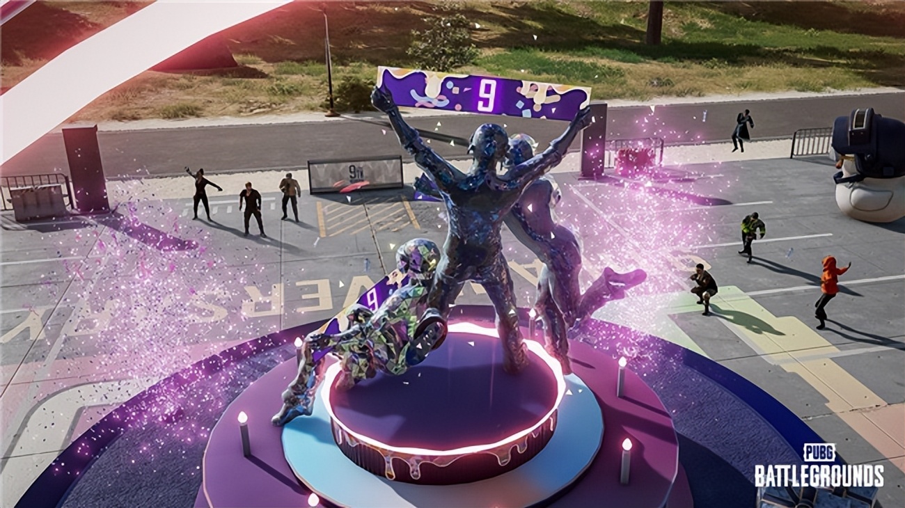 正值上线9周年之际,《PUBG》化身为欢乐海洋。为了让玩家在游戏中感受到快乐的庆典氛围,出生点内添加了9周年纪念雕像。比赛开始前,向雕像投掷全息震爆弹并命中9次,雕像将变换为该玩家的外貌。此外,游戏内还将上演庆祝《PUBG》9周年的无人机灯光秀,进一步烘托出节日气氛。值得一提的是,本次更新首次推出了只需登录游戏即可免费获得的“活动通行证:ALL DAY 派对”,通过完成任务,玩家可获得“ALLDAY PROJECT”道具、表情、G-Coin 和 BP 等丰厚奖励。