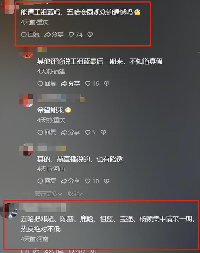 但,恋旧的观众建议道:“把王祖蓝、陈赫、鹿晗、邓超、郑恺、王宝强和杨颖一起请来,观众们就圆梦了。”