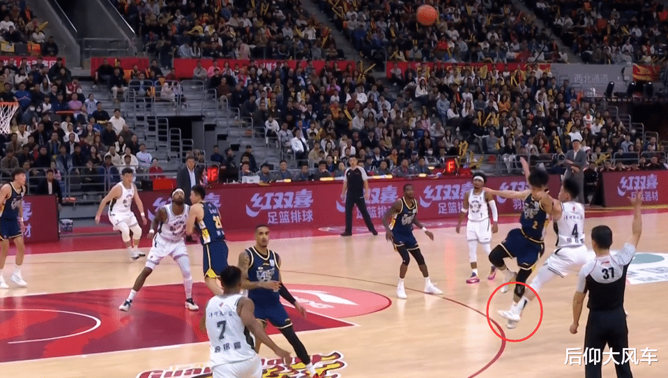 看上去是投球的伸腿在先,徐杰后面才扑上去的,正常是徐杰犯规,罚三个球