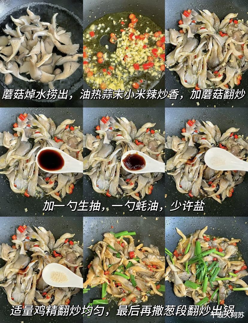 制作这道菜,选材是关键。平菇,学名“侧耳”,是市面上最常见的食用菌之一,肉质肥厚、口感滑嫩,富含多种氨基酸和维生素。市面上常见的平菇有白色、灰色两种,建议选择菌盖完整、无发黏、无异味的新鲜平菇。新鲜的大蒜是灵魂,一定要用刀背拍碎后剁成蒜末,这样蒜香才够浓郁。小米辣则根据个人口味增减,既能提辣又能增色。调味料方面,生抽、蚝油是基础,少许盐提味,适量鸡精增鲜,最后撒上一把葱段,既能点缀色彩又能增添清香。