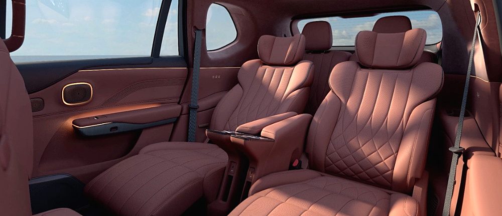 第二排配备了两个带腿托的独立行政级座椅,通道宽敞,方便第三排乘客进出。无论是家庭出行还是商务接待,都能为每一位乘客提供舒适的乘坐体验。