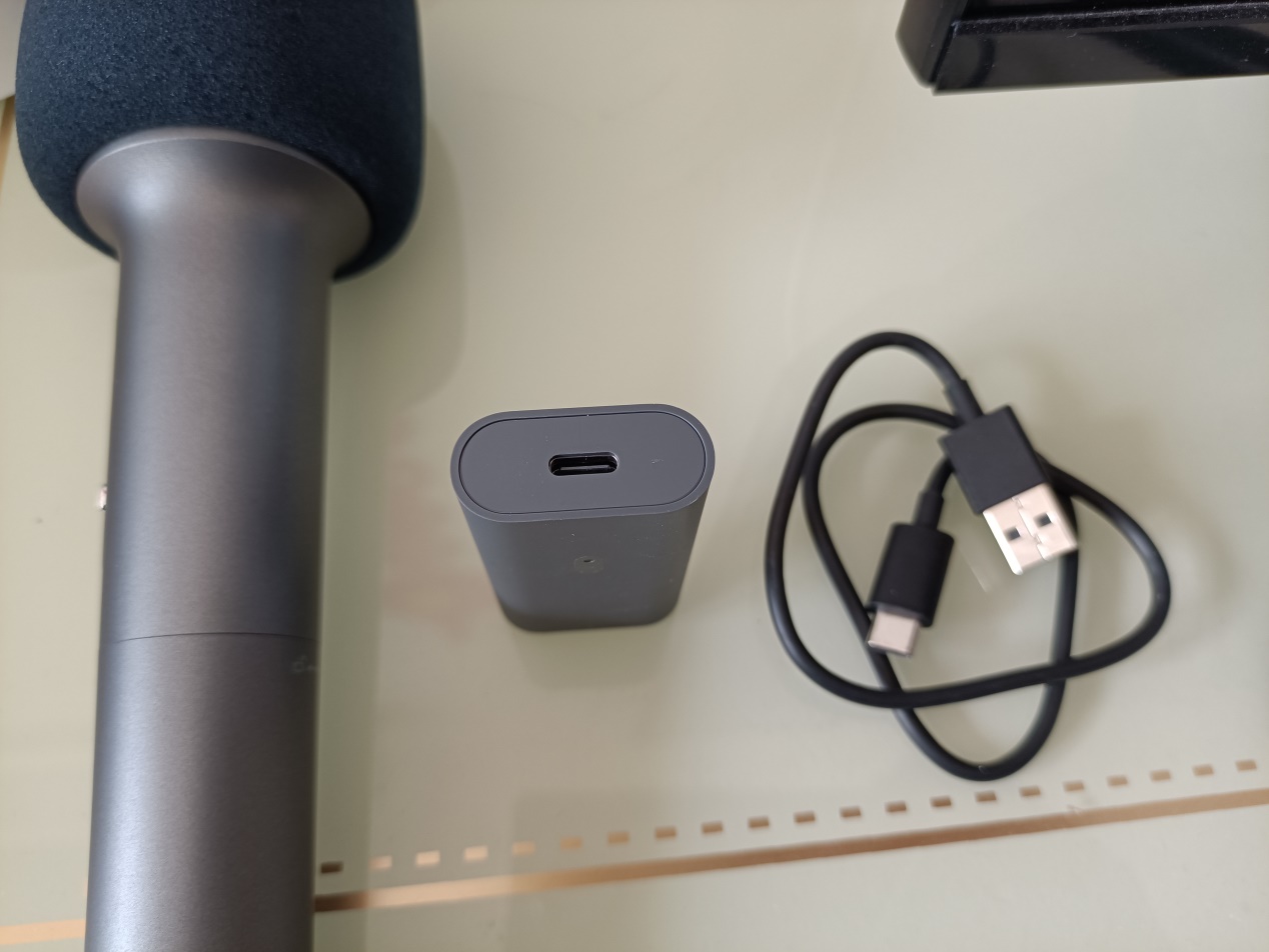 可以看到,麦克风的主控区位于话筒中部,设有电源键指示灯、音量调节按键、切换按键;长按电源键2秒可开关机,长按切换键一秒可呼出小爱同学,短按电源键可切换音效,操作逻辑简单,上手快!