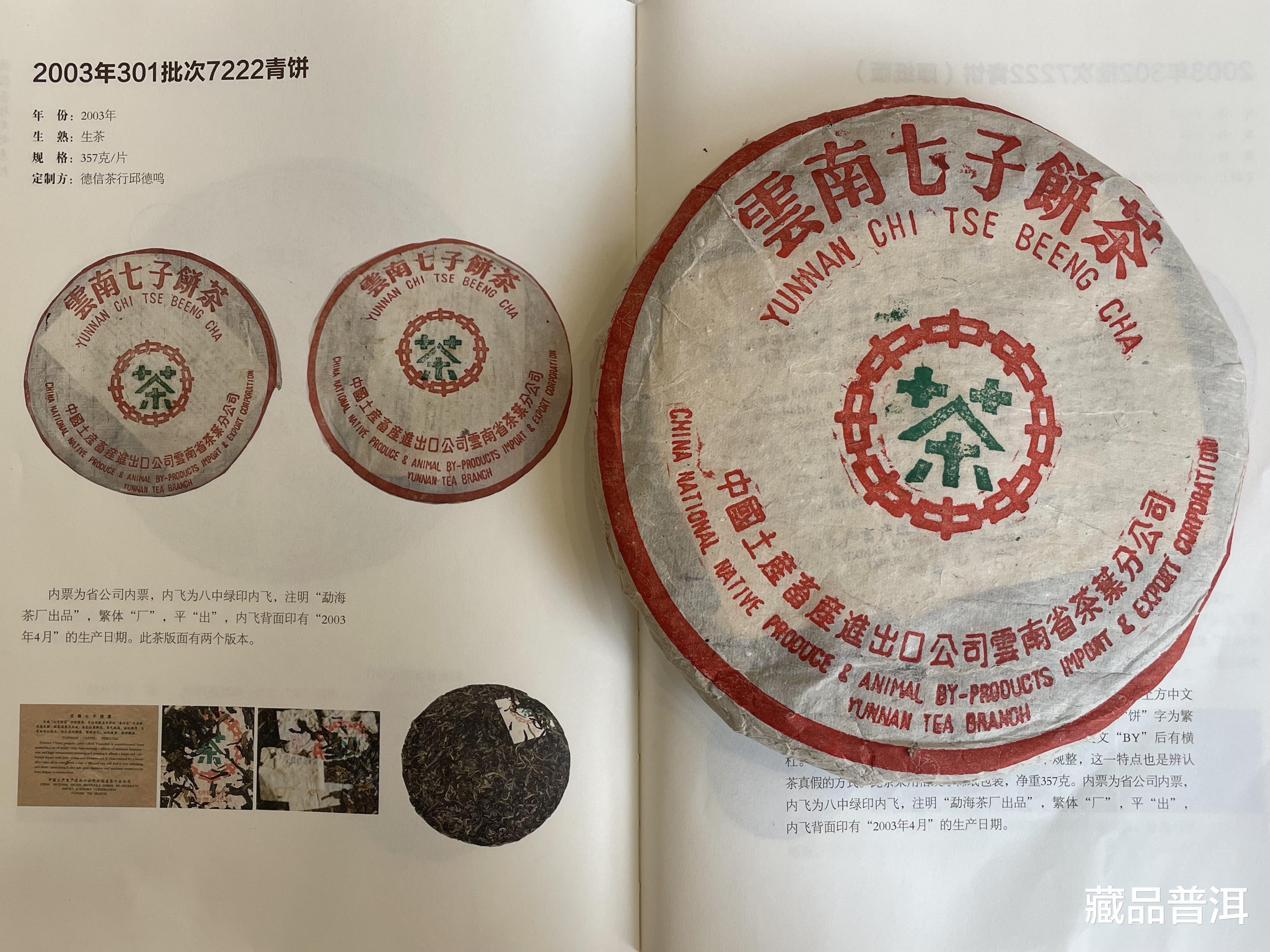 03年7222青饼各批次怎么辨识302-7222青饼跟301批、303批的版面几乎一样,都是云南七子饼中茶绿印版面,该怎么区分呢?关键的辨识点在内飞背面。