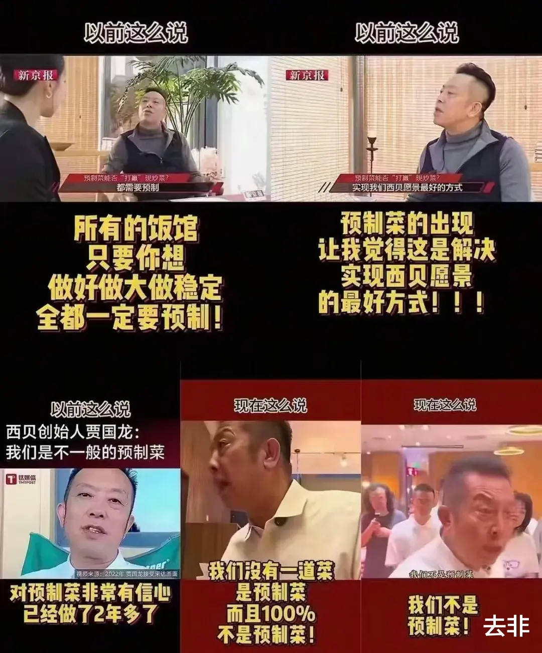 几年前,你贾老板说预制菜多么多么好,现如今,又极力表明自己完全没有使用预制菜。说得过去吗?消费者会怎么看?