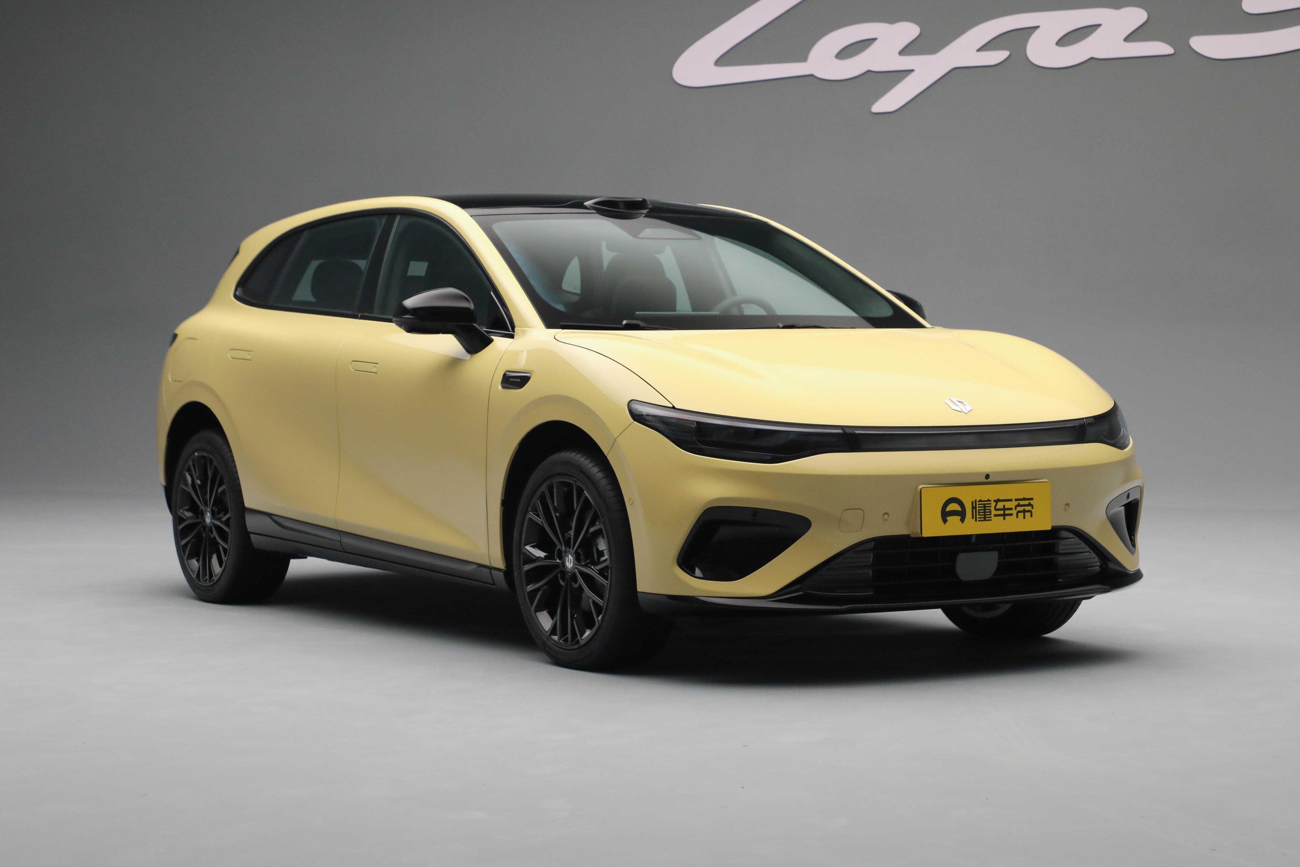 今早到 4S 店,第一眼就看到展厅中央的电掣黄实车,瞬间挪不开脚 —— 这颜色真不是图片能还原的,不是那种刺眼的亮黄,而是带着金属细闪的暖黄,阳光下看细腻又有质感,销售说用了 6 涂 6 烘工艺,我忍不住上手摸了摸,漆面顺滑厚实,没有一点颗粒感,连车门边缘的喷漆都很均匀,细节很到位。旁边看车的阿姨还问这黄色会不会不耐脏啊?销售说这漆加了抗污涂层,平时洗车随便擦两下就行,而且越看越耐看。封闭式前脸搭配贯穿式灯组,配合无边框车门、隐藏式门把手,营造出同级罕见的轿跑质感,0.256Cd超低风阻系数兼顾颜值与能效,我很喜欢这个无框车门,仪式感直接拉满,开门时玻璃会自动降 3 毫米,刚好避开门框,关门时 “咔嗒” 一声,厚重感十足,完全不像这个价位的车。19 英寸的黑色掠翼轮毂和黄色车身撞色,视觉上特别炸,轮毂盖是磁吸的,销售演示了一下,轻轻一扣就装上,以后想换样式也方便,这点太懂我们年轻人了。如果觉得这些还不够“炸街”,还可以选择Ultra版,将拥有更夸张的前后包围和后扰流板。同时,Lafa5还拥有过去车型不常见的个性化车漆,比如电擎黄、星夜蓝、摩根粉等,虽然不是亮眼的纯色,但也足够年轻用户的喜爱。