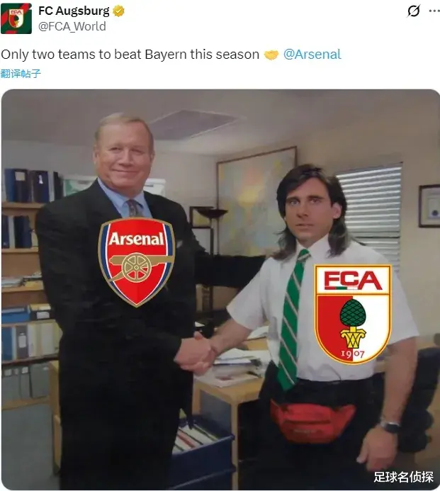 看来阿森纳又是打响了反抗德甲霸主的第一枪……有意思的是,奥格斯堡这个配图,似乎是自认阿森纳为大哥啊……