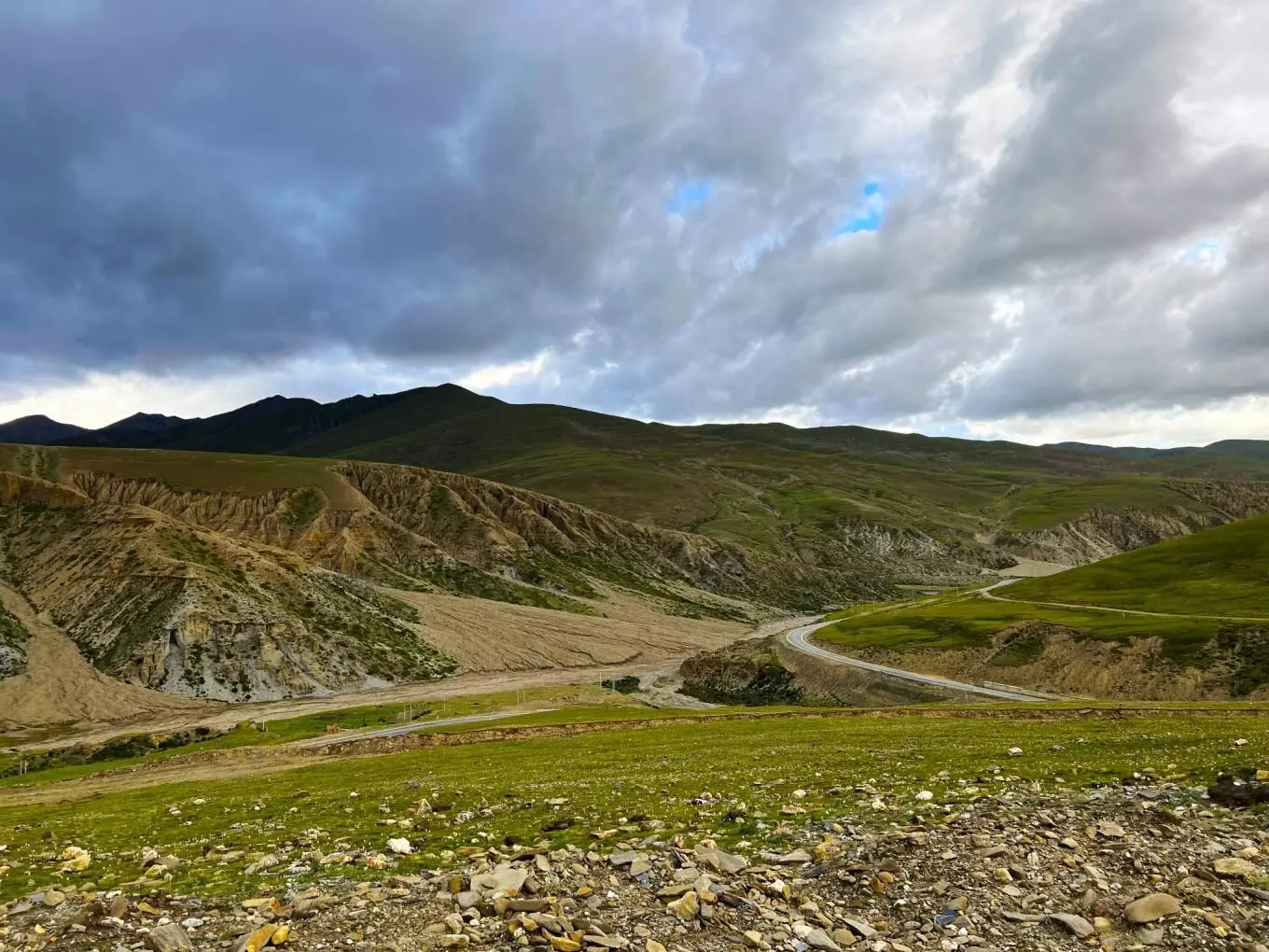 正当我们停车欣赏垭口风景,后面两辆藏A的车子呼啸而过,原来这不是和我们在美木村分道扬镳的雷克萨斯嘛,也许他们并不是返回只是晕头转向走错了路,最后还是闯进牧场和我们走了同样一条艰困的道路。