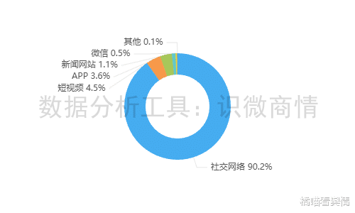 该时段内,有关“好利来面包掉地仍售卖事件”的舆情主要集中在社交网络平台,约占90.2%,其次为短视频(约占4.5%),新闻APP(约占3.6%)。
