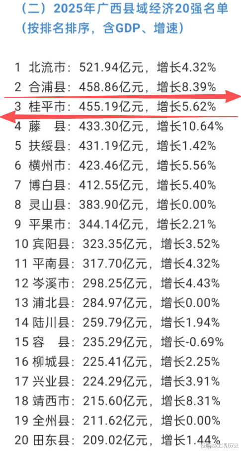 广西桂平,昨天又刷到一张更全的2025年广西县域GDP数据图,看到桂平依旧是排位第三。