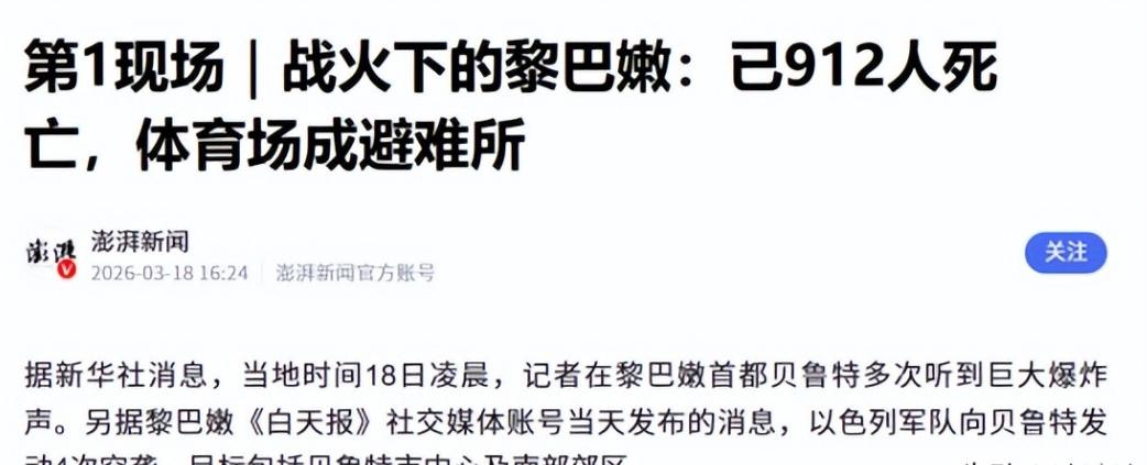 战火中的生命账本3月18日凌晨,黎巴嫩首都贝鲁特还浸在夜色里,突然响起的爆炸声打破了宁静。