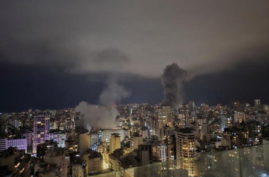 凌晨的贝鲁特,南部郊区浓烟滚滚遮天蔽日,以色列的空袭还在继续。