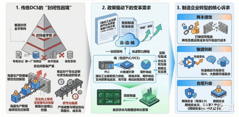 传统DCS系统曾以其高可靠性、实时性筑起了工业自动化的基石,但其“封闭金字塔”式架构已日益成为制造业数字化转型的桎梏。