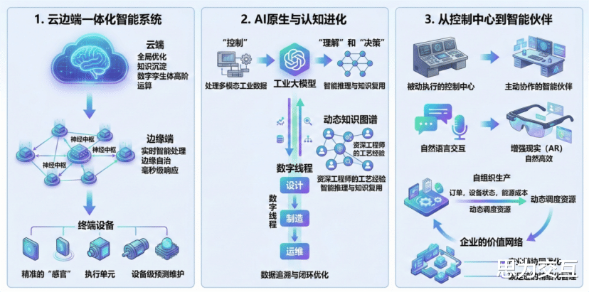 最终形态将是云、边、端的无缝一体化。云端成为“大脑”,负责全局优化、知识沉淀与数字孪生体的高阶运算;边缘成为“神经中枢”,负责实时智能处理、边缘自治与毫秒级响应;终端设备则成为精准的“感官”与执行单元,实现设备级预测维护。这种架构已在工业实践中展现出巨大潜力。
