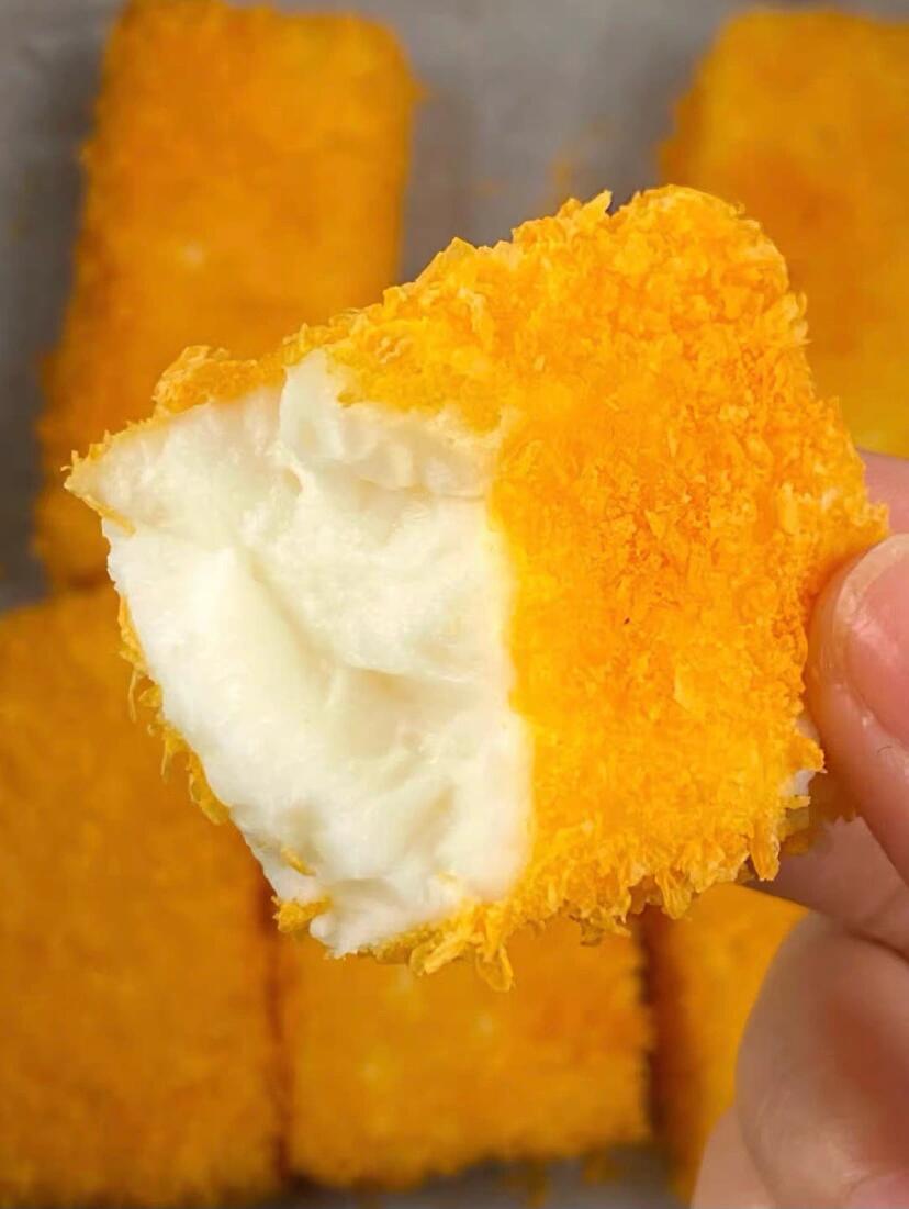 锅里倒油,中火烧到160度左右(筷子插进去冒小泡就行)。把裹好的奶条轻轻放进去,不要一次放太多,避免粘连。炸至金黄酥脆,大概2-3分钟,捞出控油。