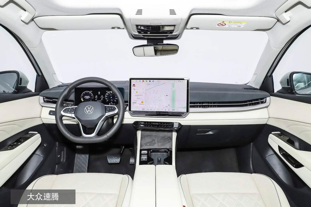 速腾则还是比较典型的重心偏转布局,10.25+15.0英寸双屏采用悬浮式布局、方向盘带旋转式电子怀挡,而中控屏与对应的出风口、控制条都会朝向主驾一侧偏转。尽管这里的装饰材料没有星瑞那么高级,但软包覆盖面积与部分烤漆装饰点缀,依旧是比较到位的。此外,速腾其实看上去也要清爽一些,这反倒成了它吸引年轻用户的方式。