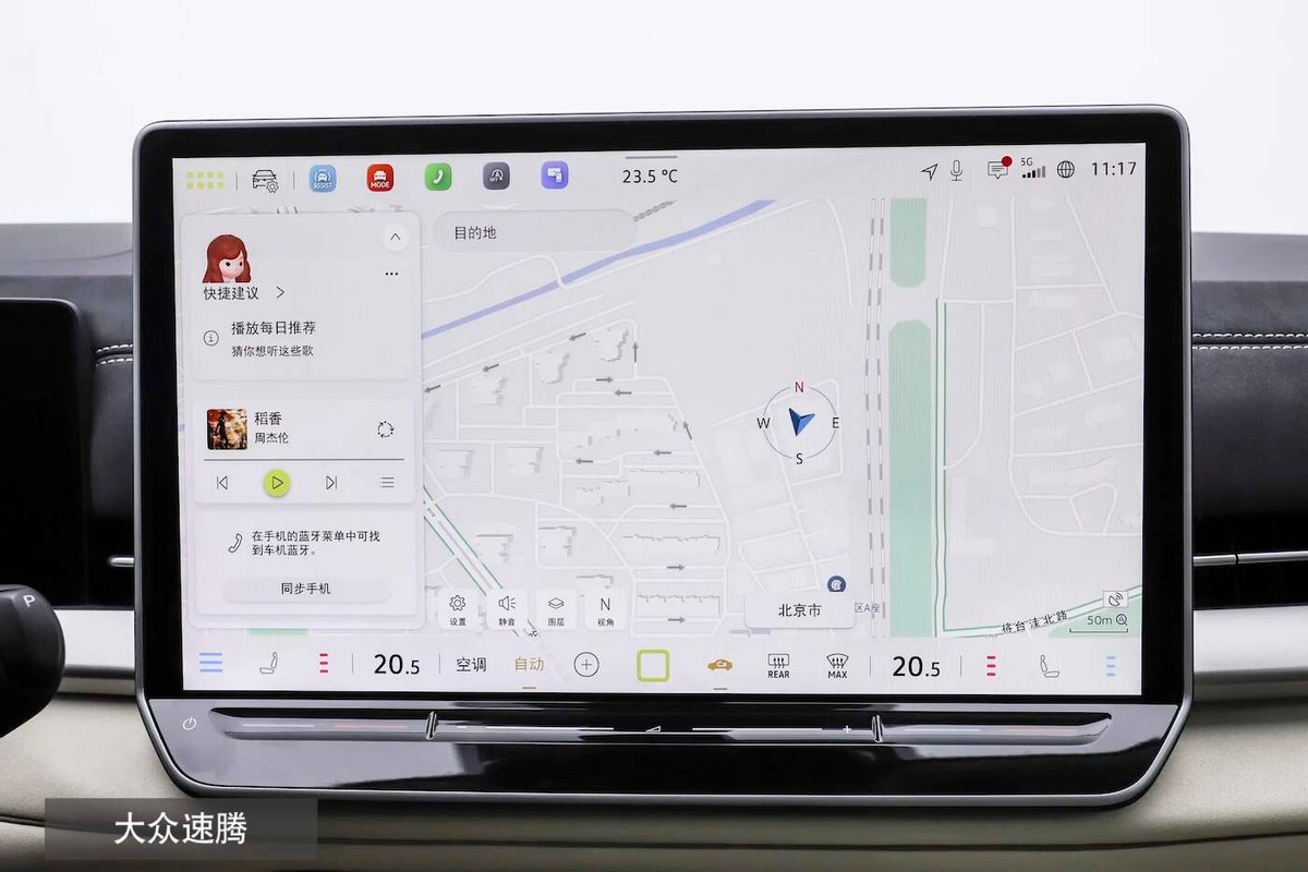 而速腾虽然少了Carlink,但手机互联方面却多了CarPlay,而且它的IQ.Connectivity也同样支持生态应用的扩展,而且在主界面与导航界面逻辑上其实也在向着本土靠齐,只是原生功能的驾驶模式、倒车影像等设计还有待优化。