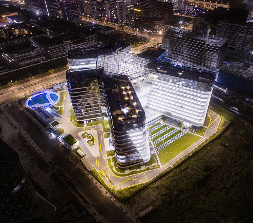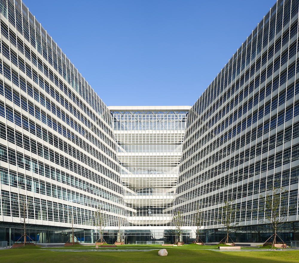 整个园区由三栋研发塔楼以L型围合而成,楼间通过连廊相互衔接,步行5分钟即可到达园内任意位置。