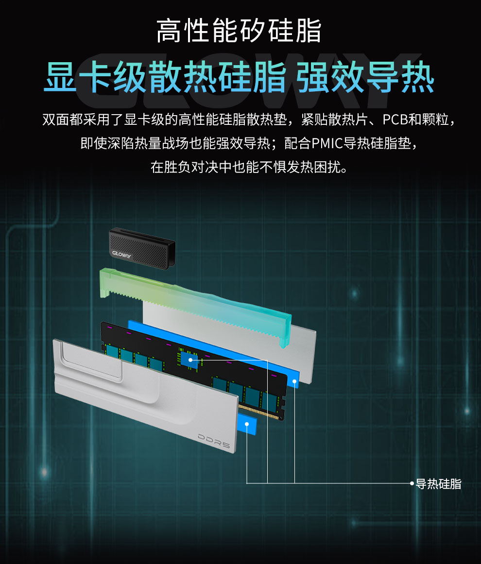 除此之外,光威神武DDR5 7000还在双面同时采用了显卡级高性能散热硅脂,大大强化导热性,进一步保证了它在高频运行甚至超频时的稳定性。