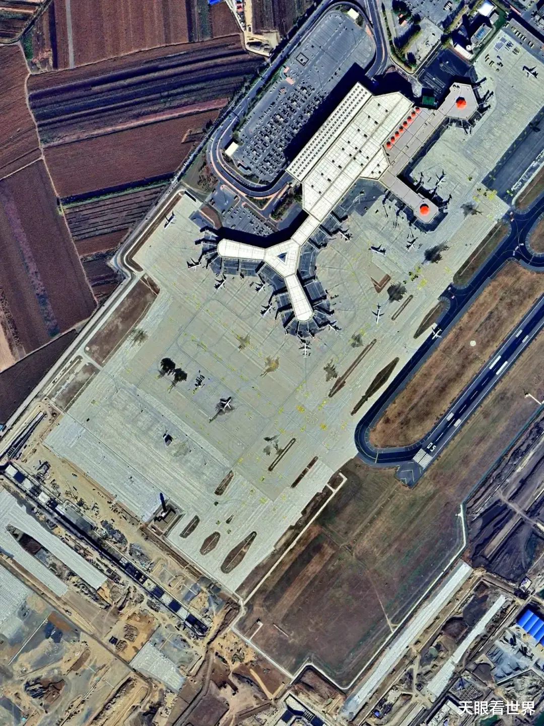 目前机场有T1、T2两座航站楼,总面积22.65万平方米——T1为6.4万平方米,T2为16.25万平方米。民航站坪设机位90个,含6个E类机位。跑道共两条:原东一跑道长3200米、宽45米,2025年1月投运的东二跑道长3600米、宽45米,这让它成为东北地区首个双跑道民用机场。