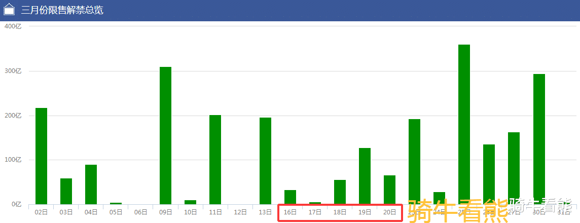 3月18日(周三)、3月19日(周四)、3月20日(周五)是下周解禁的高峰期,并且有部分个股解禁比例已经超过了60%。一定要注意这些个股不要“踩雷”。