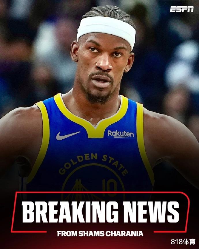 之后,据ESPN名记Shams报道,多位消息人士透露,勇士球星吉米·巴特勒遭遇前十字韧带撕裂,赛季报销!