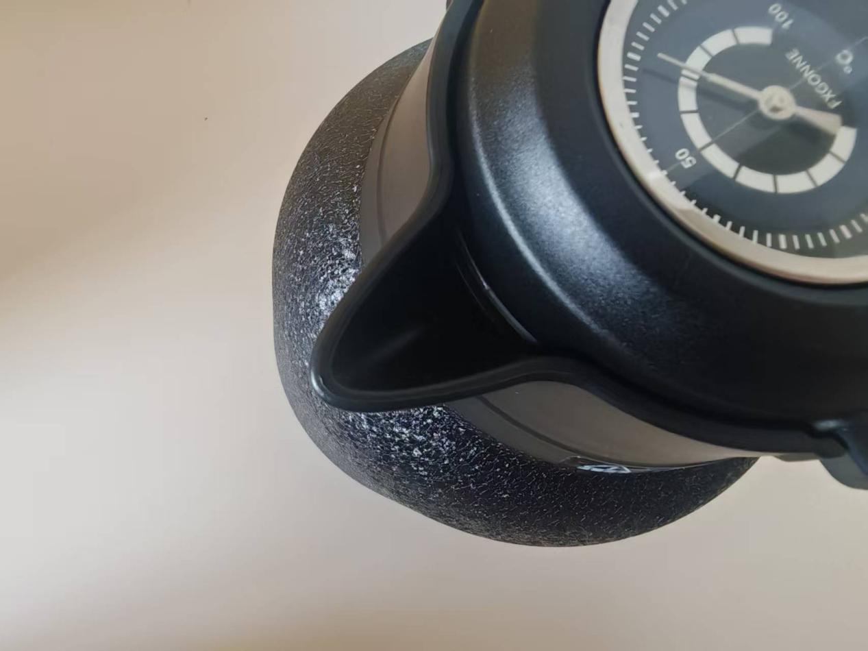 细节做工经得起细看:壶盖采用旋钮+卡扣式的密封设计,密封效果很好;壶嘴的出水流畅,不会洒漏,倒水时不用刻意对准杯子;壶身的把手弧度设计合理,握在手里贴合掌心,提拿时很稳;食品级机械智显探针设计在壶盖顶部,倒进去热水就能显示水温,操作简单方便。最让人放心的是,整个壶身没有多余的胶水拼接,采用一体压铸工艺,内壁光滑无残留,清洁起来特别方便。
