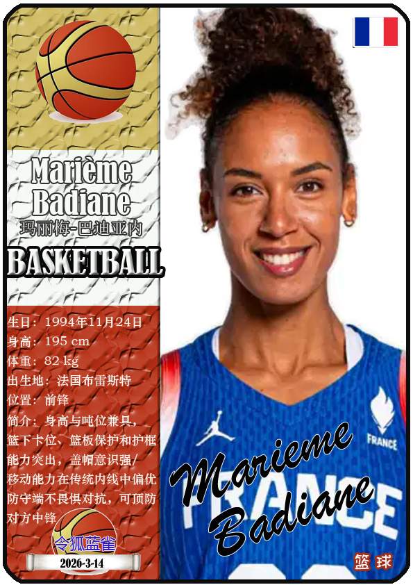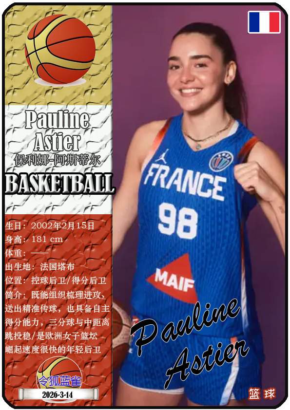 2026年女篮世界杯预选赛于2026年3月11日至17日举行,由土耳其伊斯坦布尔、法国维勒班、波多黎各圣胡安以及中国武汉四座城市共同承办。本期盘点法国女篮的12名球员(按所属俱乐部分类排序):
