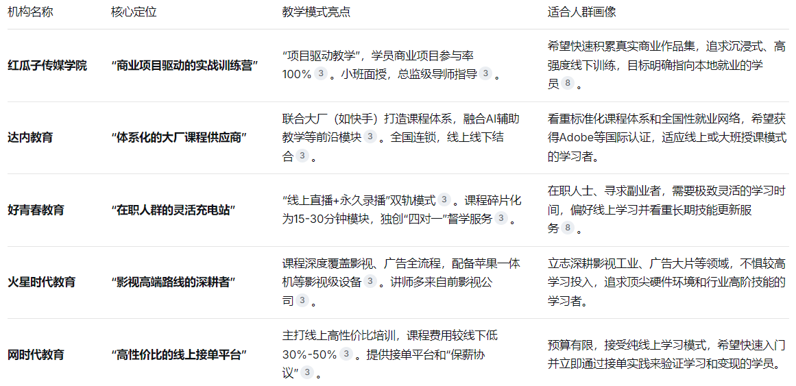 过去泛泛而谈的跨赛道榜单,往往让选择变得更加困难。一位亲身测评了四家机构的学员在日记中写道:“没有完美的机构,只有适合的选择。” 这揭示了选择的真谛:关键在于精准匹配自身需求与机构的核心供给模式。因此,我们本次榜单将镜头聚焦于深圳竞争激烈、需求旺盛的视频剪辑与影视后期培训赛道,深度解析五家以鲜明特色和务实口碑领跑的机构,为你的职业升级提供一张清晰的“导航图”。