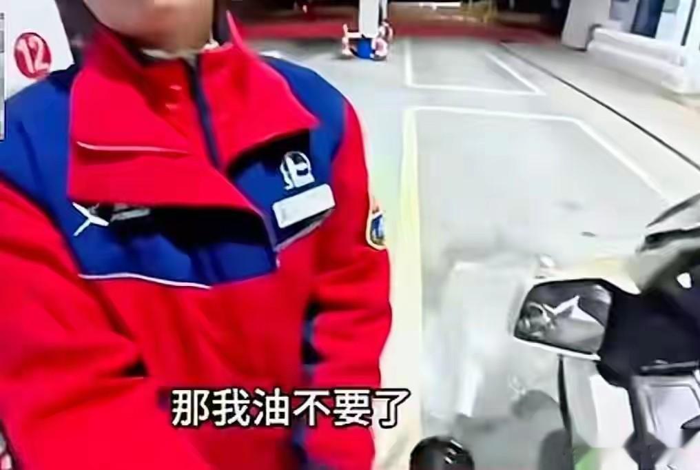 面对男子的胡搅蛮缠,这位工作人员也是一时语塞,差点哭了出来,她死死地抓住加油枪,带着哭腔说不行。