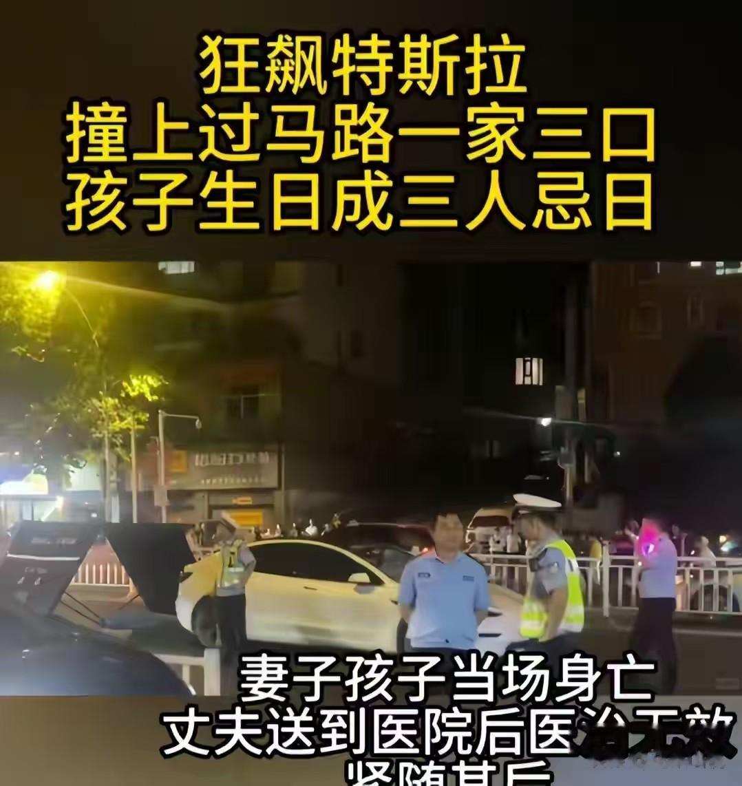 正当儿子一家三口往马路对面走过时,一辆白色特斯拉咆哮着从东向西驶过来。