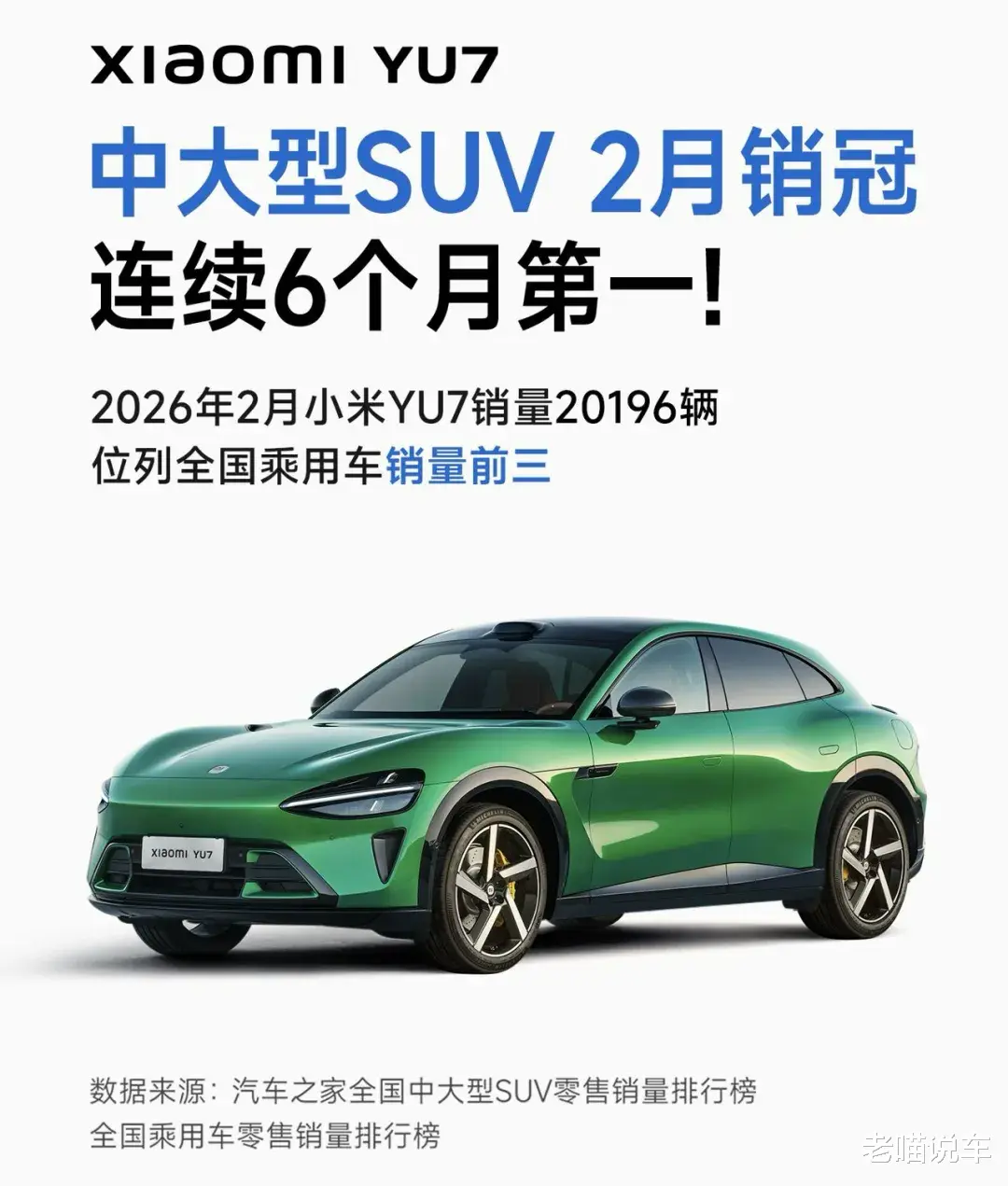 来看看这个数据有多夸张:小米YU7已经连续6个月拿下中大型SUV销量冠军。2025年12月,它一个月就卖了接近4万辆。