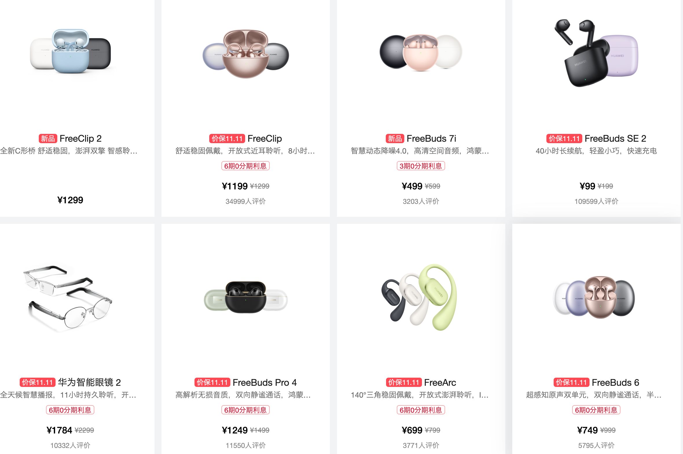 耳机类产品也同样不放过,FreeBuds系列、FreeClip、FreeAce、FreeLace,连智能眼镜和有线耳机也都在优惠名单里,整体来看,这次优惠覆盖了从入门到高端的整个生态链。