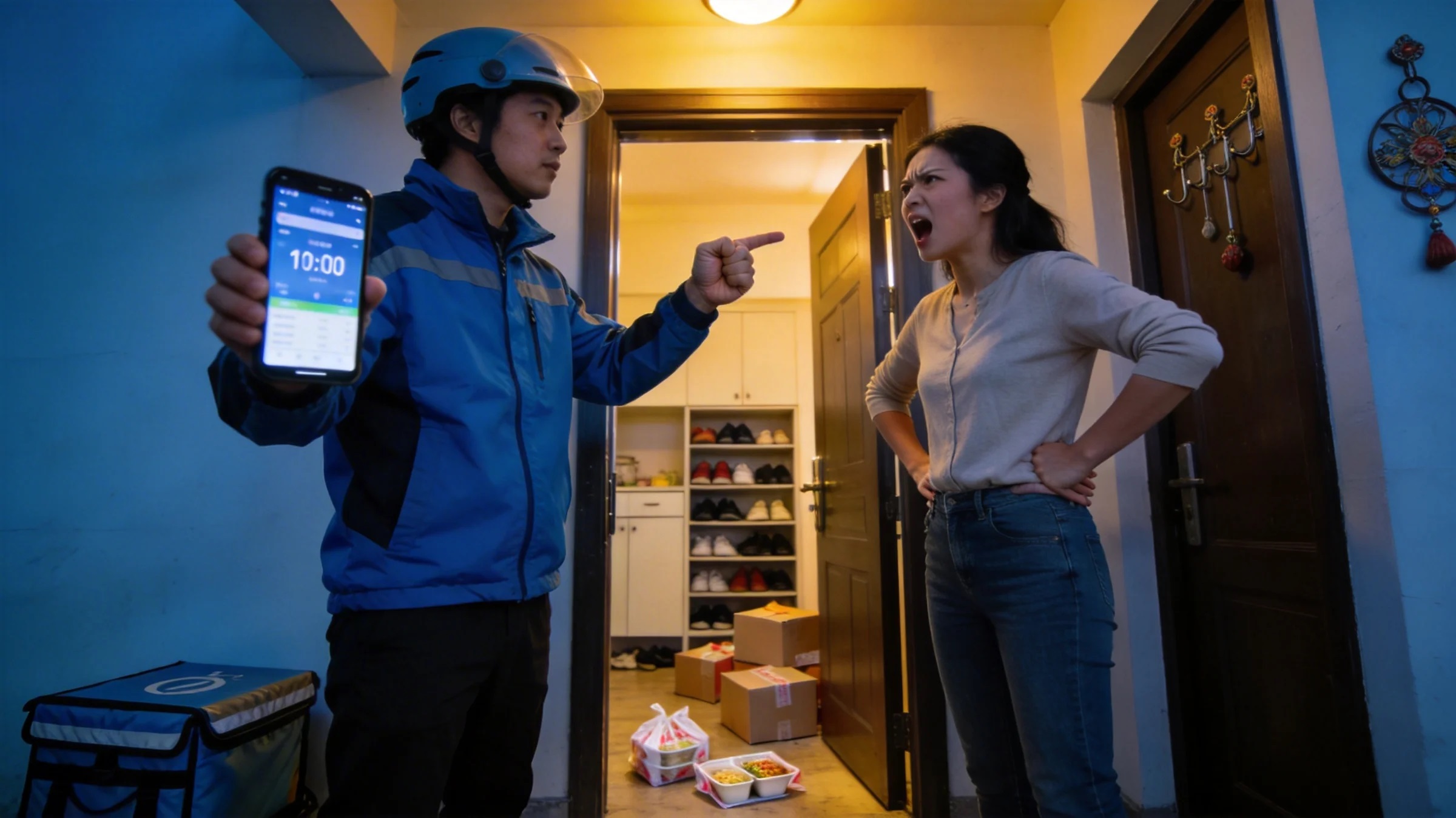 事情起因是配送延误时间太久。女顾客小雪点的麻辣烫未按时送达,她与外卖员王刚(化名)沟通后,对方解释电动车故障,需再等二十分钟。餐送到时餐食都凉了成坨了,小雪情绪激动,说了些发泄不好听的话,王刚当时赔了不是,便离开了。