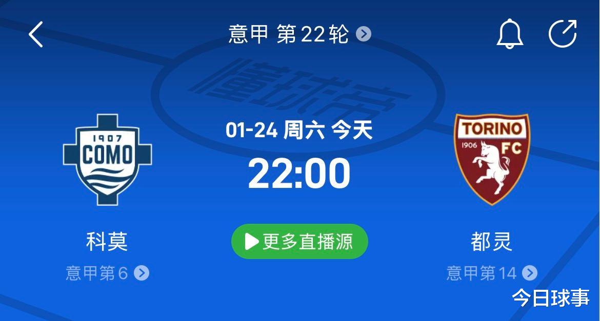 北京时间1月24日22:00,意甲联赛第22轮,科莫坐镇主场迎战都灵。目前,科莫21轮10胜7平4负积37分排名第6,都灵则积23分排名联赛第14,从实力上看,双方有一定差距。