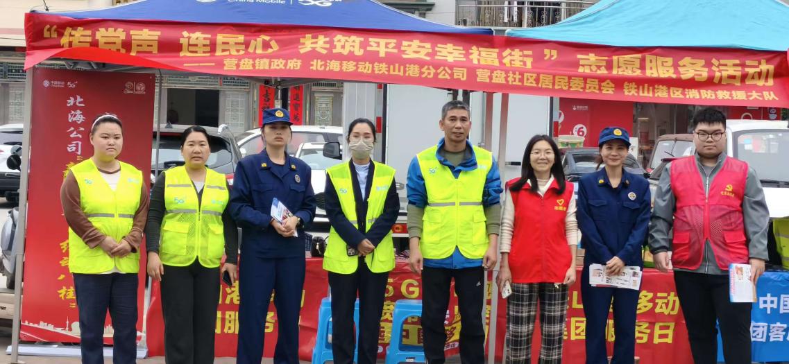 近日,中国移动广西北海铁山港分公司联合营盘镇政府、营盘社区居委会、铁山港区消防大队等单位,在营盘社区共同组织开展“传党声