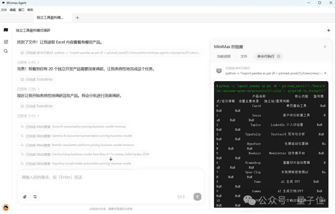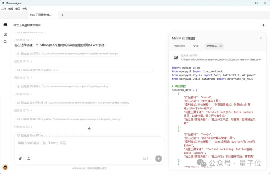 完成检索之后,Desktop App把收集到的信息整理成了结构化形式,并通过Python代码写入到了原来的表格文件当中。