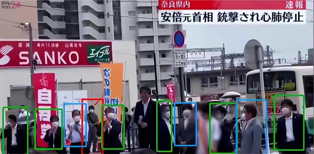 有人仔细分析了安倍演讲前的入场画面,有6名身着制服的男性保镖陪同,但没有看到石田梦美。