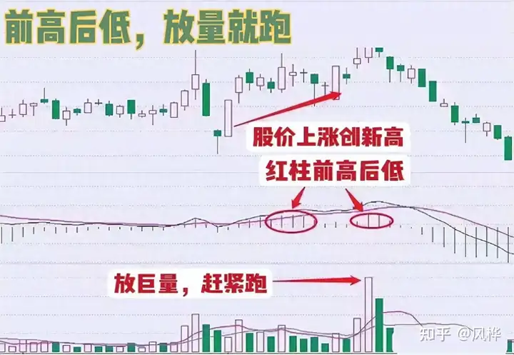 MACD离场口诀: “前高后低,放量就跑。”