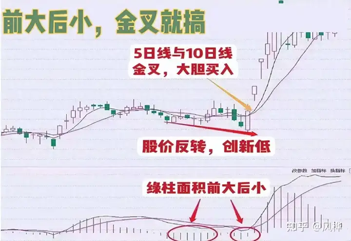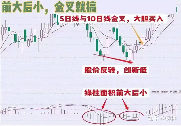 MACD进场口诀: “前大后小,金叉就搞。”