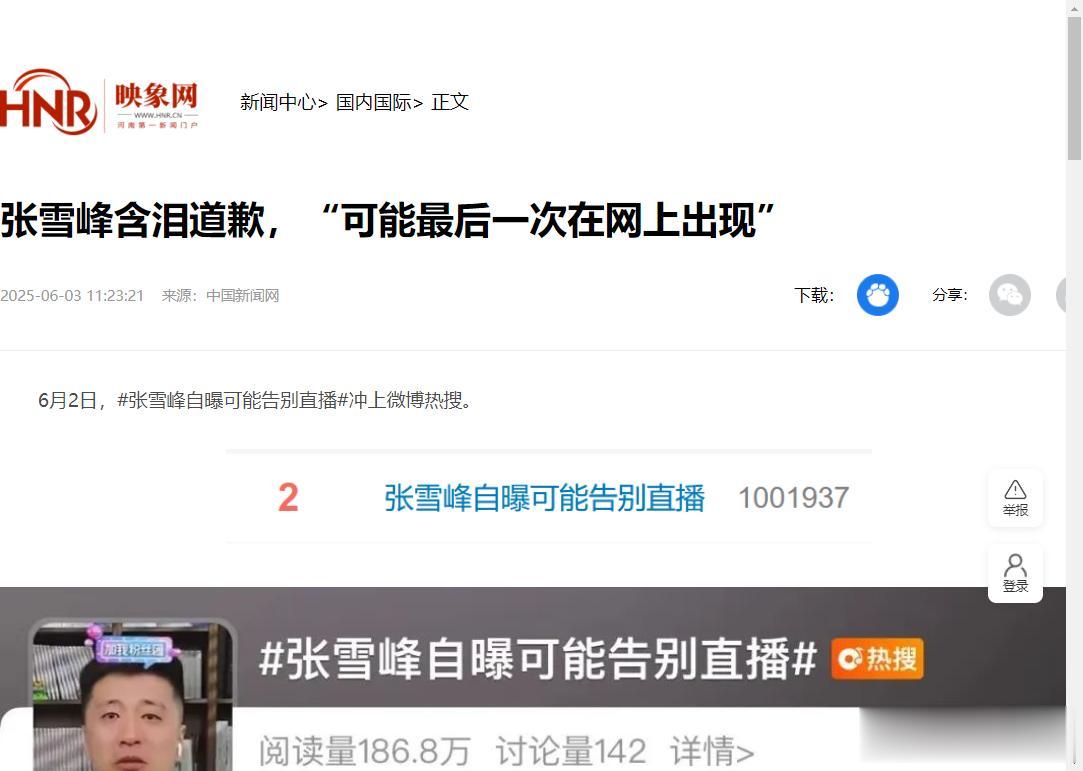 信息来源:张雪峰含泪道歉,“可能最后一次在网上出现”