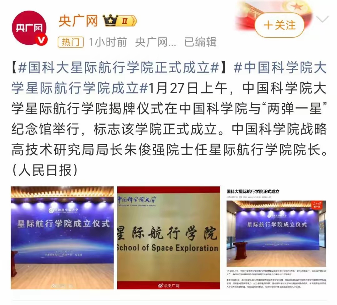 重磅揭牌!全国首个,藏着中国航天的深空野心1月27日,国科大星际航行学院的揭牌仪式,在“两弹一星”纪念馆隆重举行,这里还是钱学森先生亲自选址的我国首个火箭研究与试验基地,自带满满的航天情怀与使命担当。同期还召开了人才培养指导委员会会议,3位院士担任共同主任,航天领域顶尖专家齐聚一堂,规格直接拉满。