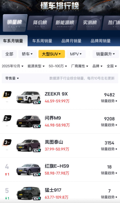 这份满分“质检报告”的背后,和极氪的产品布局分不开。极氪9X主打大型豪华SUV,瞄准家庭出行和商务接待场景,宽敞的空间、扎实的底盘和周全的安全配置,刚好戳中高净值用户的核心需求;极氪009在40万元以上MPV市场连续多年销量领先,不管是国内市场还是海外布局,都保持着领先的状态;极氪007则扎根主流高端轿车市场,凭借均衡的综合体验,吸引了不少追求品质的年轻用户。从大型SUV到中大型MPV,再到高端轿车,极氪覆盖了不同用户的用车场景,也为口碑的全面提升打下了基础。
