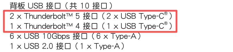 ① 以 ProArt Z890 Creator WIFI 主板为例,有2个雷电5接口和1个雷电4接口,在【使用手册---软件功能】中可以查到主板支持 Thunderbolt 分享即 Thunderbolt Share。