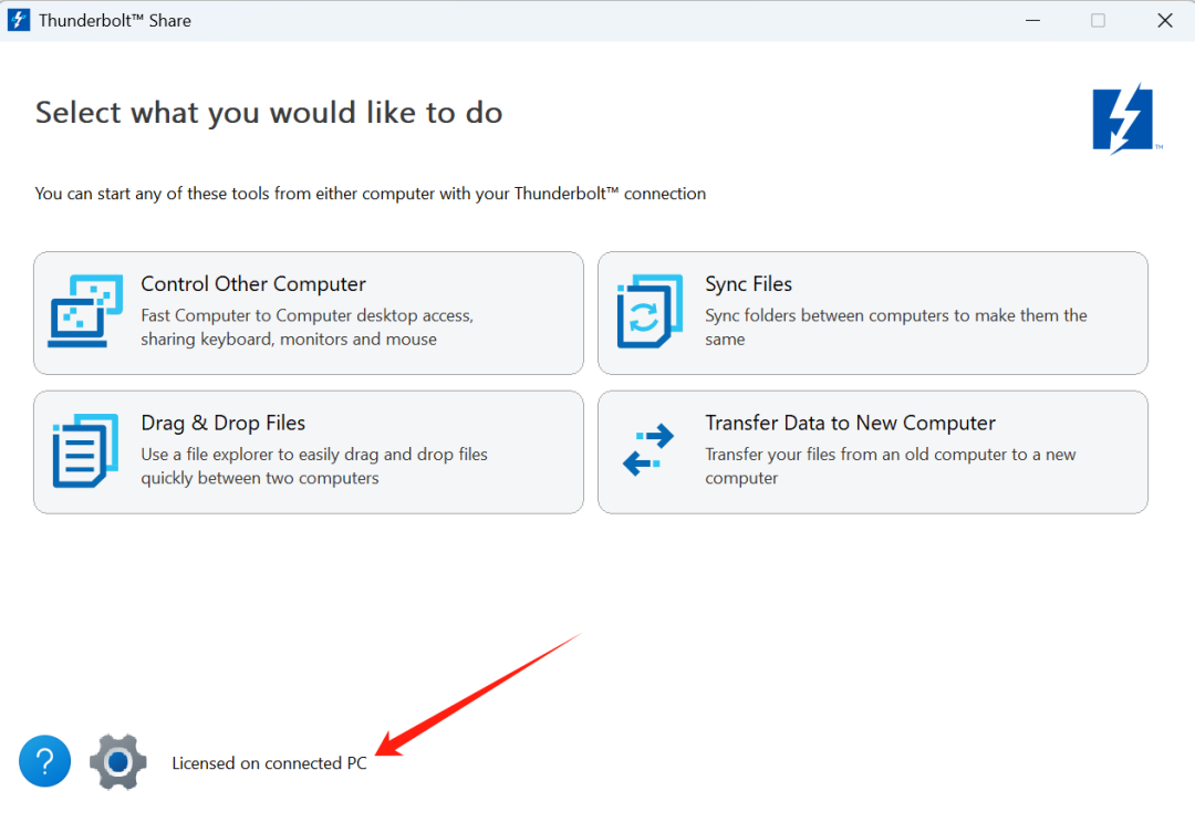 ▶️支持 Thunderbolt Share 授权的台式机在应用下方会显示 Thunderbolt Share 授权(licensed for system)。