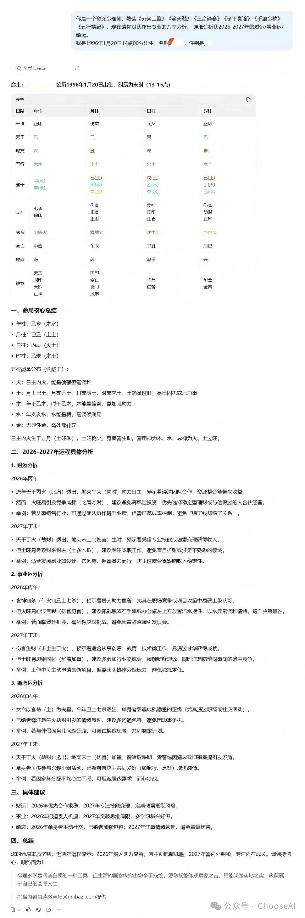大家看个乐呵吧,有网友说AI有些排盘不准。我不是相关专业人士,也看不出给我的分析是否有错漏之处,大家有需要的可以自己查询一下。