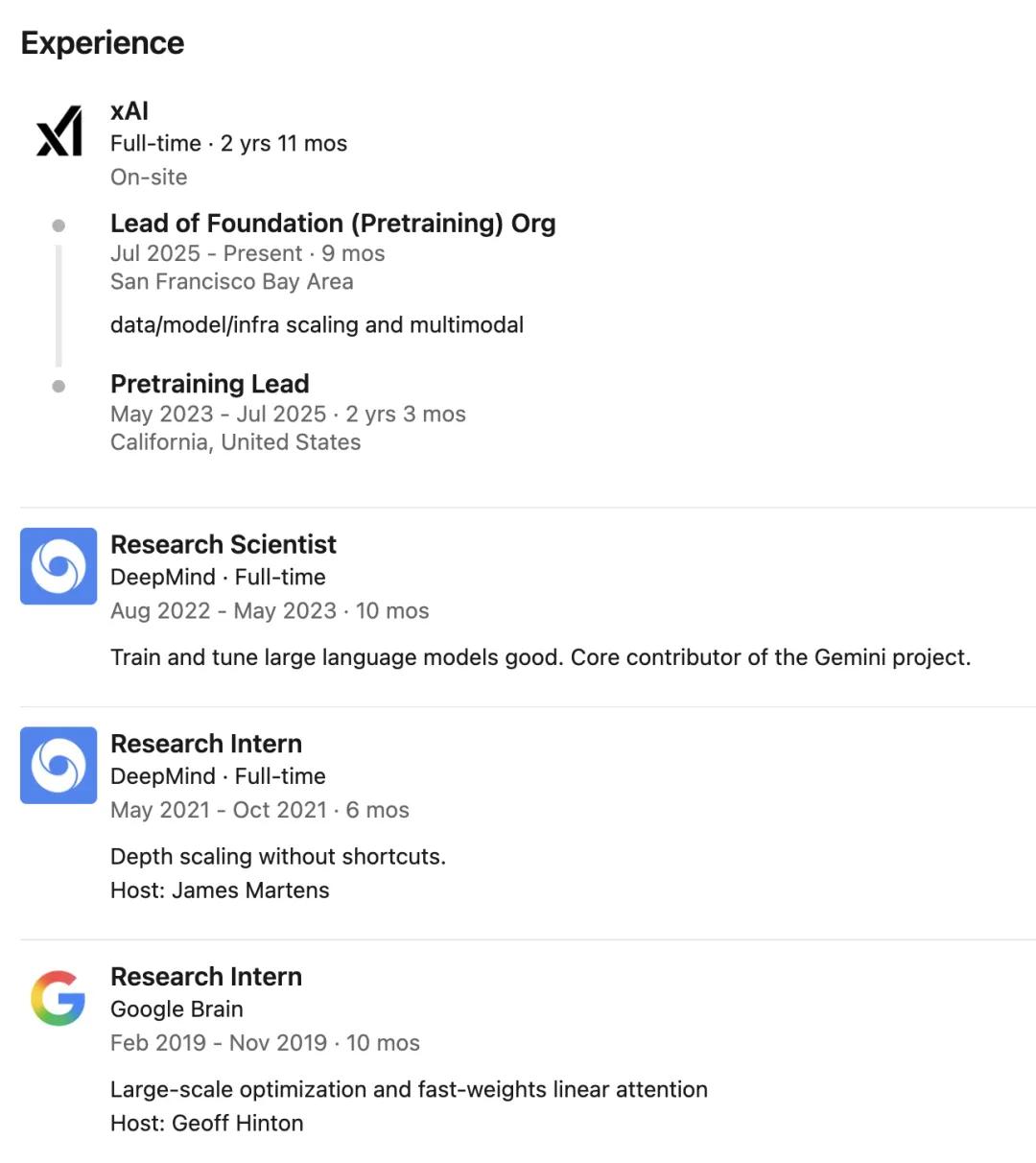 据张国栋的 LinkedIn 个人资料显示,在加入 xAI 之前,他曾效力于谷歌DeepMind,并在多伦多大学获得了博士学位。
